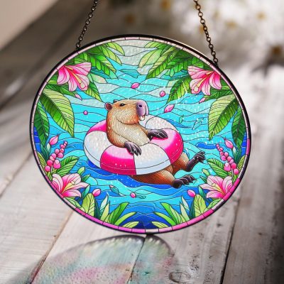 Autumn Capybara And Pumpkin Stained Glass Suncatcher